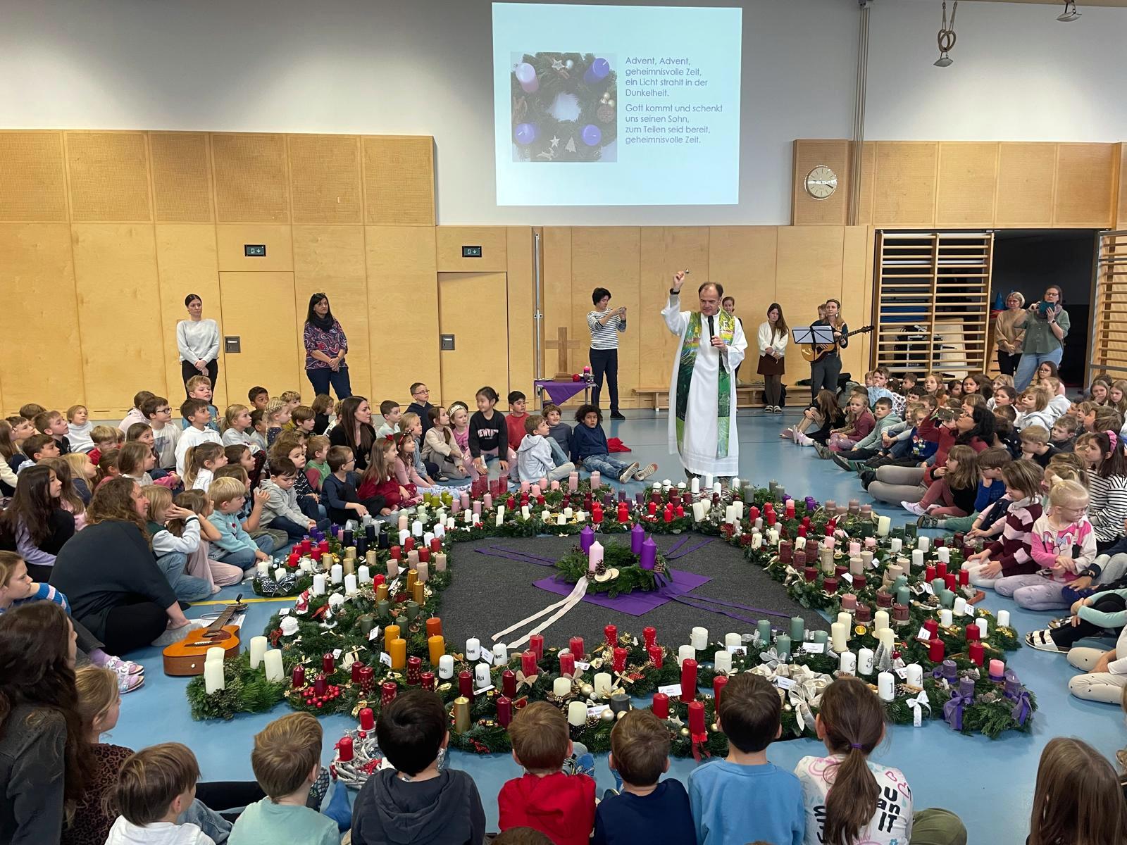 Eine stimmungsvolle und besinnliche Stunde erlebten heute unsere Schülerinnen und Schüler bei der Adventkranzsegnung im Turnsaal.
