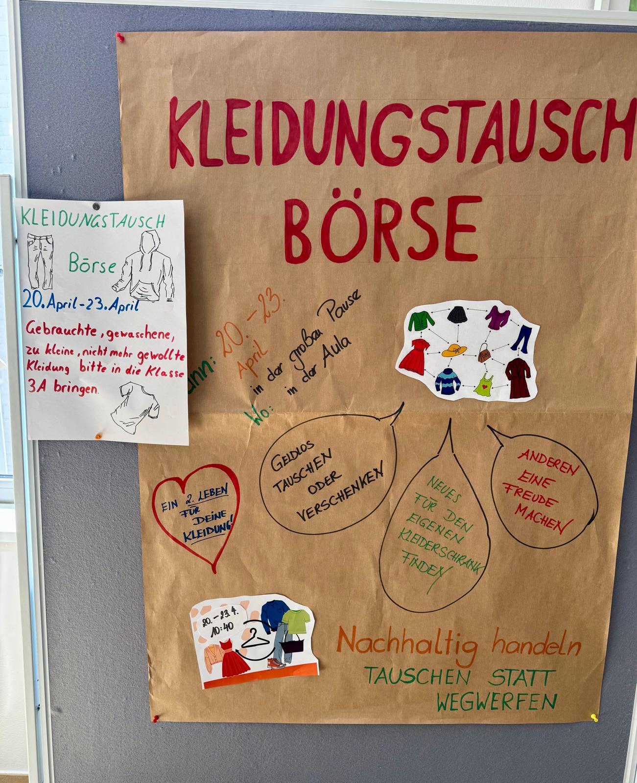 Inspiriert von diesem Besuch organisieren unsere Schülerinnen und Schüler von 20. bis 23. April eine Kleidertauschbörse an der Schule: