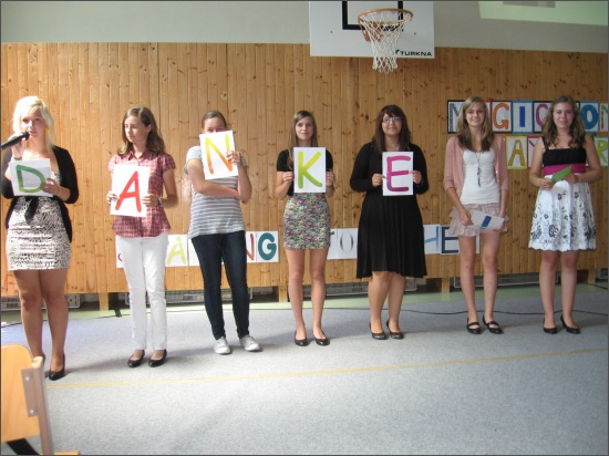 Heute verabschiedeten sich die Schülerinnen der 4. Klassen (a,b,c). Sie präsentierten die Höhepunkte der letzten 4 Jahre auf beeindruckende Weise und sehr gekonnt (PP-Präs.). Die Mädchen haben  viel gelernt, um ihre Ausbildung  weiterzuführen. Die Damen bedankten sich sehr herzlich bei ihren KV´s und den Lehrerinnen für deren konsequente Bemühungen ihnen den Lehrstoff zu vermitteln.